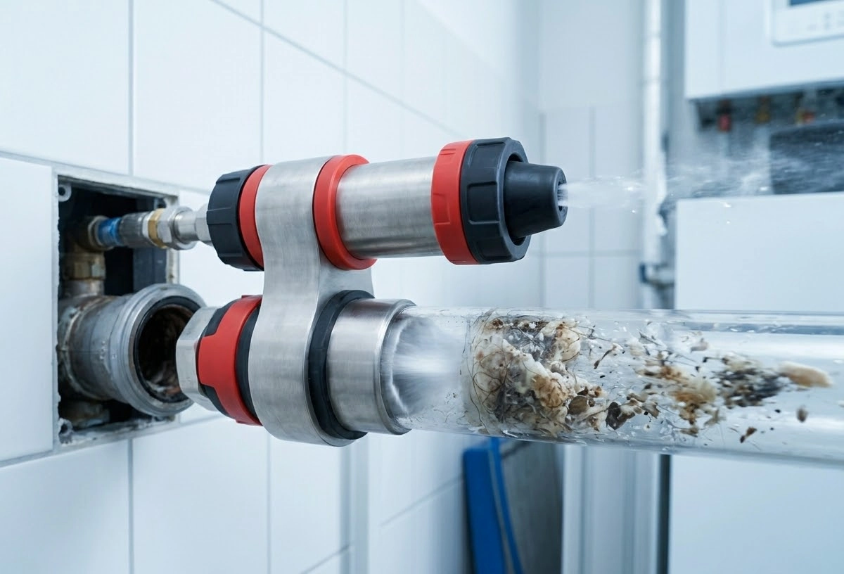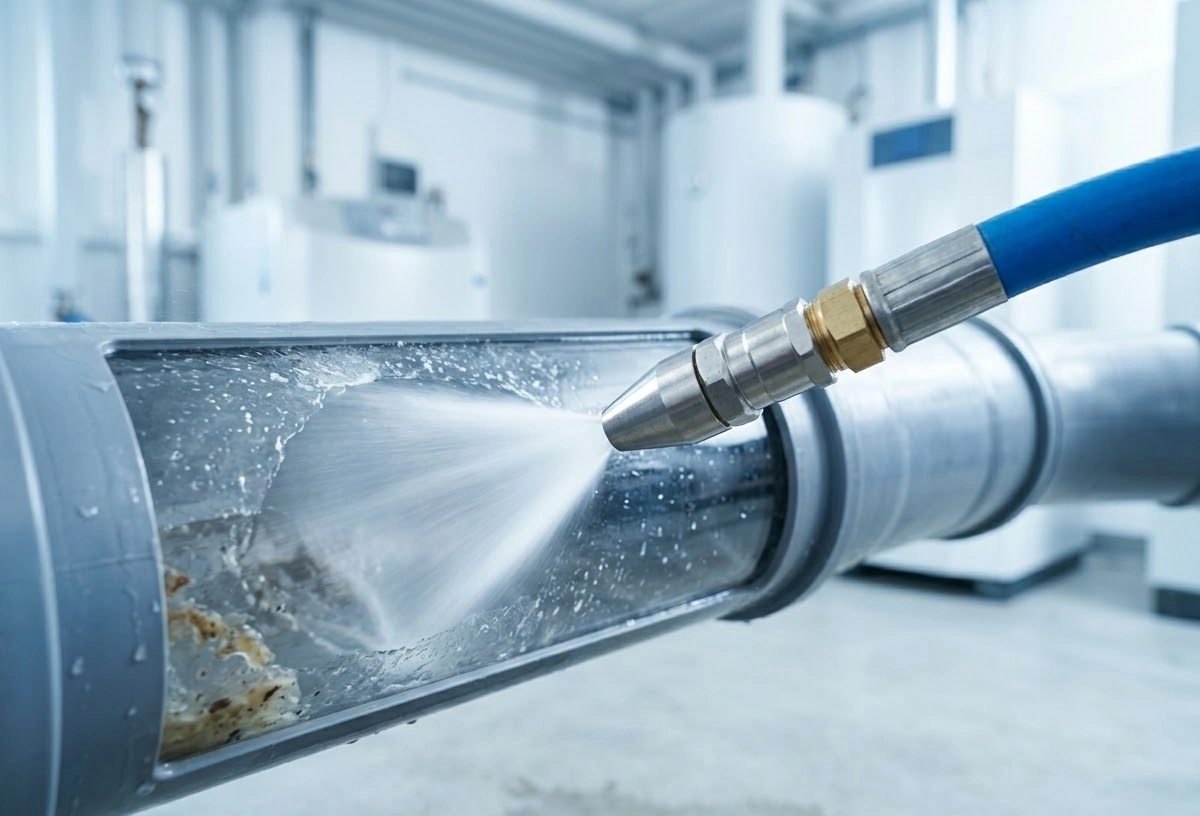 Сегодня золотой стандарт прочистки канализации — гидродинамический метод. В трубу подаётся вода под высоким давлением (до 200 бар) через специальные насадки, которые не только сбивают отложения, но и промывают стенки трубы по всей длине.